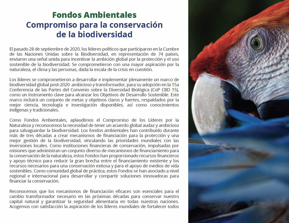 El acuerdo nace en el Congreso Virtual de Finanzas Sostenibles para la Conservación 2020